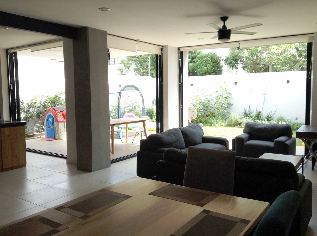 Casa con una arquitectura que destaca por su gran iluminación natural y amplitud. Cuenta con ventanales de piso a techo, alturas superiores a 3 metros, pisos de porcelanato, y detalles de lujo como barras de granito italiano en cocina y baños. Espacios generosos, distribución funcional y un estilo moderno que se siente desde el ingreso.
